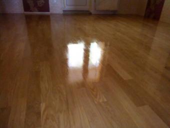 Проводимо екологічне покриття паркету олією з твердим воском. Це рішення прийняте на підтримку натурального, екологічно чистого покриття для паркету. Крім цього паркетна підлога, покрита паркетною олією, виглядає більш природною, натуральною, з приємним шовковисто - матовим блиском.